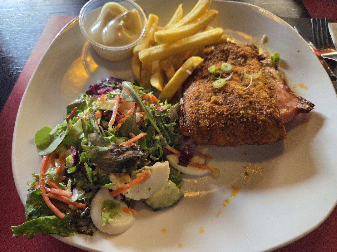 One of the standout offerings here is the homemade pea soup, a favorite among regulars like Lisa dB, who calls it “great,” underscoring the café's commitment to homemade culinary delights. For those looking for something hearty, Peter Ramondt recommends the schnitzel—an impressive dish packed with generous sides that promise to satisfy even the heartiest of appetites.